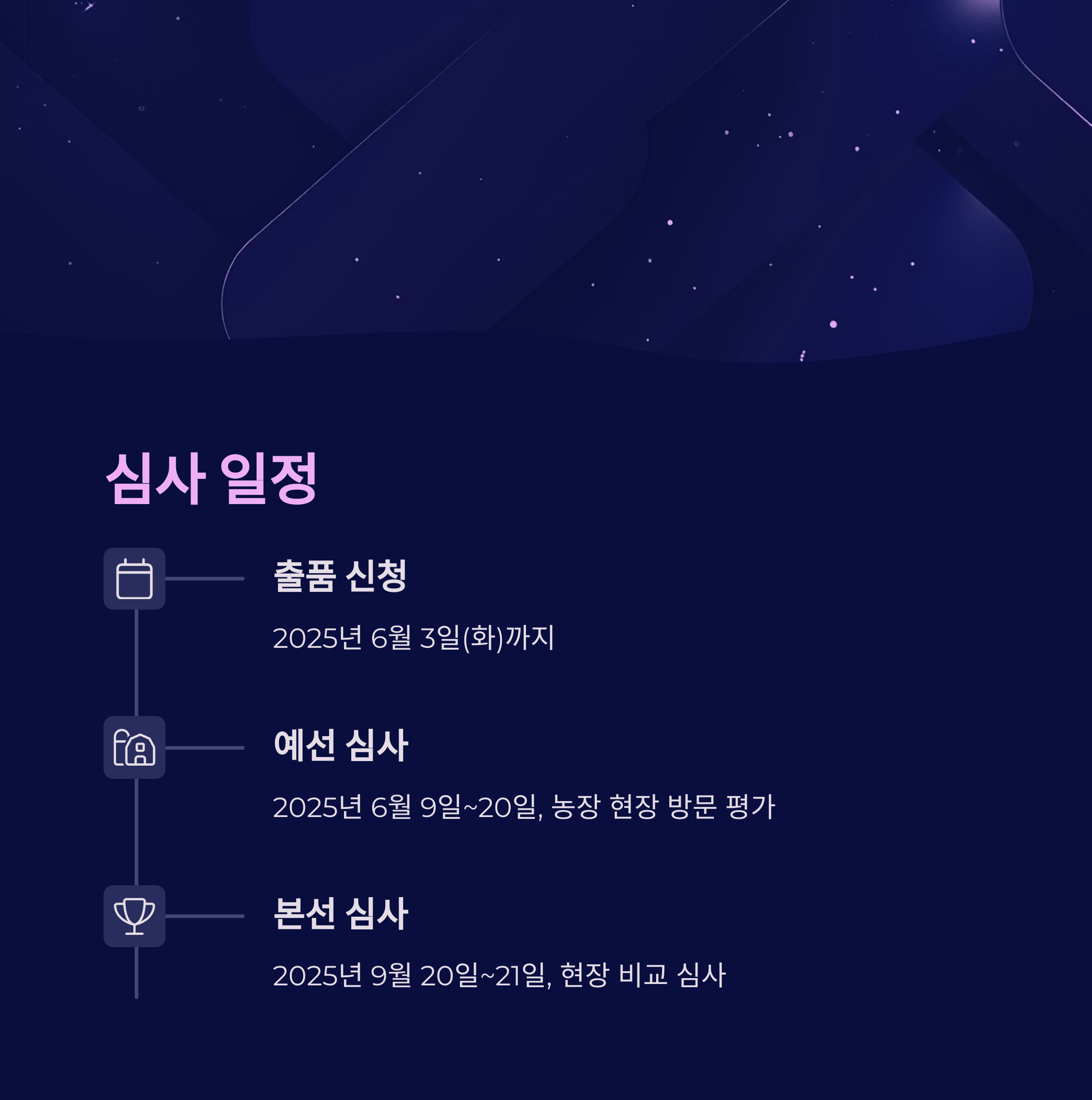 예선심사는 2025년 6월 9일부터 6월 20일까지 농장 현장에서 진행됩니다.