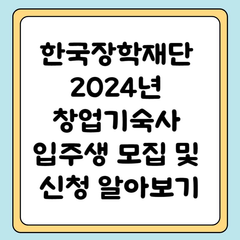 2024년 한국장학재단 창업기숙사 입주생 모집 안내 안녕하세요. 한국장학재단입니다. 한국장학재단 창업기숙사 5개 권역(서울, 부산, 대구, 광주, 대전)에서 2024년 입주생을 모집합니다. 창업기숙