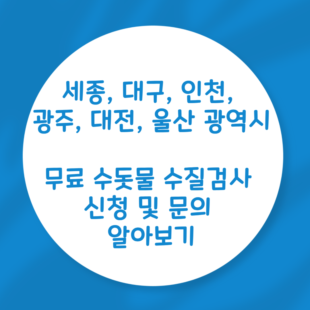 안녕하세요. 세종, 대구, 인천, 광주, 대전, 울산 광역시 가정에서 무료 수돗물 수질검사 신청 및 문의 알아보겠습니다.
