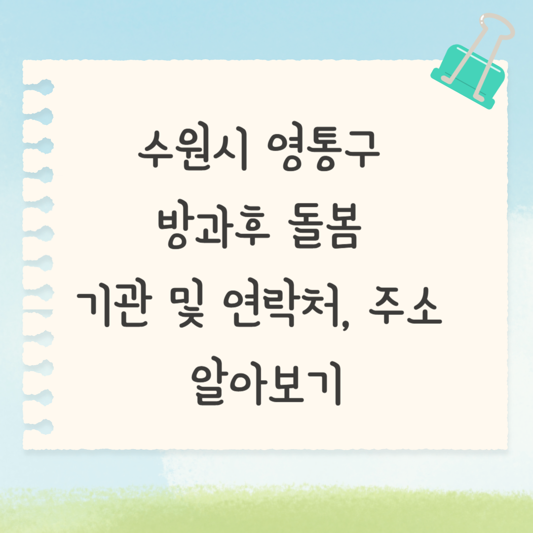 안녕하세요. 수원시 영통구에 위치한 방과 후 돌봄 돌봄기관 및 연락처, 주소에 대해서 알아보겠습니다.