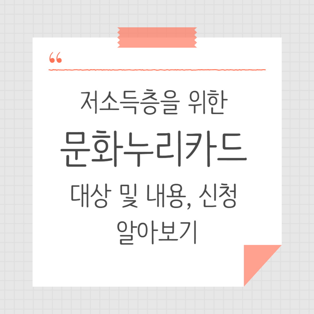 안녕하세요. 저소득층에게 문화생활 및 여행 · 체육 활동을 즐길 수 있도록 문화누리카드를 발급해주고 있습니다.