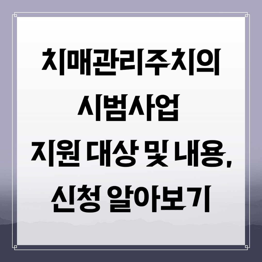 안녕하세요. 치매관리주치의 시범사업에 대해서 알아볼 텐데요. 치매관리주치의 시범사업은 치매 환자를 대상으로 전문적인 맞춤형 치료와 관리 서비스를 제공하고 있습니다. 치매를 진단받은 환자는 이 사업에 참여하는 의료기관에서 치매 전담 의사에게 포괄적인 건강 평가를 받고, 이에 따라 체계적인 치료와 관리를 받을 수 있습니다. 이를 통해 환자는 가까운 시범사업 병의원에서 전반적인 건강 관리도 받을 수 있습니다. 신청은 참여 의료기관을 방문하여 할 수 있습니다.