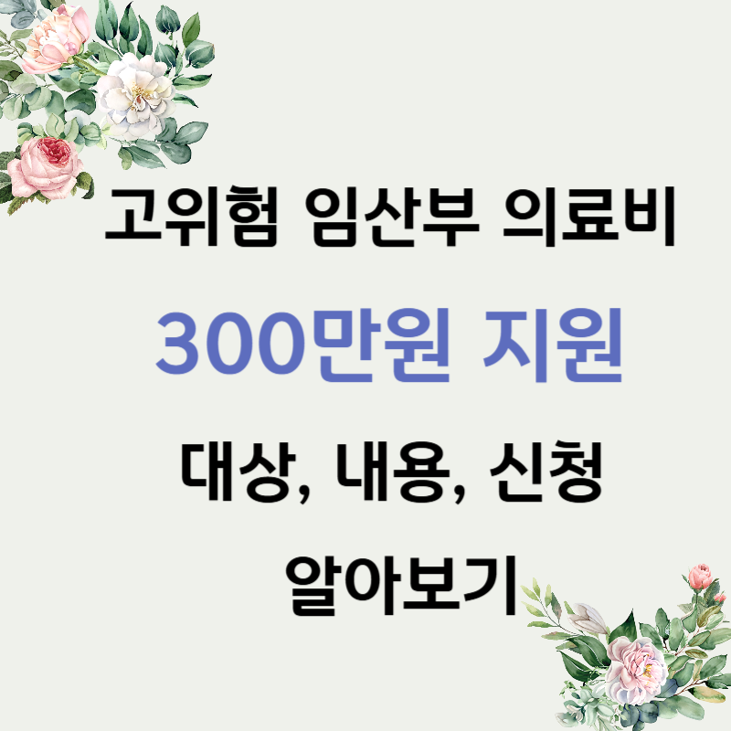 고위험 임산부 의료비 지원사업은 가계 부담이 큰 전액본인부담금과 비급여 진료비를 중심으로 최대 300만원까지 입원치료비를 지원합니다.