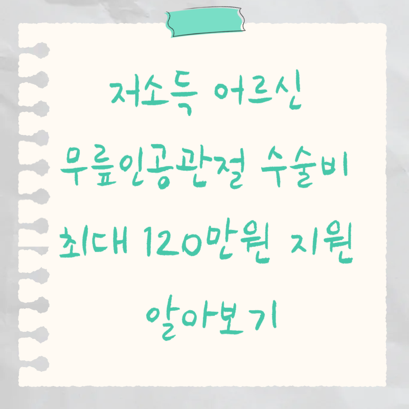 | 지원 제외 항목 | 1) 간병비, 상급병실료, 선택진료비, 보호자 식대, 무릎인공관절 수술과 관련 없는 검사, 치료, 입원료 등 |