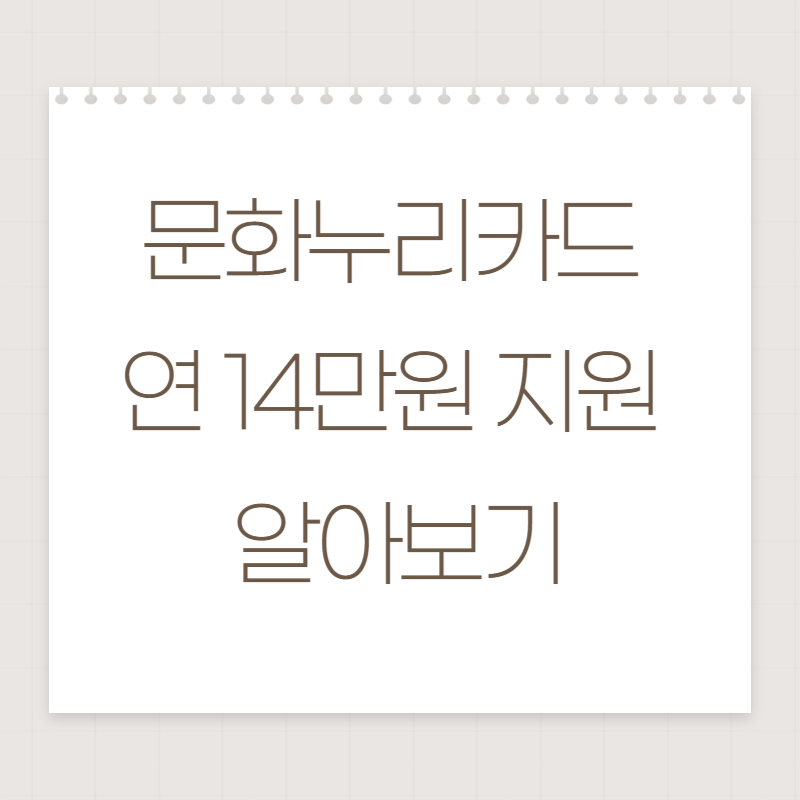 6세 이상(2019.12.31. 이전 출생) 기초생활수급자 및 차상위계층이 대상이며, 1인당 연 14만원의 문화 · 관광 · 체육 활동비를 지원합니다. 신청은 '문화누리' 누리집 · 앱 또는 주민센터에서 가능합니다.